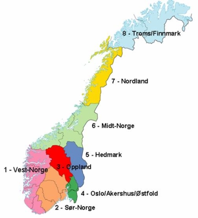 Norge er inndelt i åtte rovviltregioner. Grensene følger fylkesgrenser. Hver region styres av en politisk valgt nemnd som har ansvar for at bestandene av rovdyr opprettholdes på det nivået som Stortinget har bestemt.